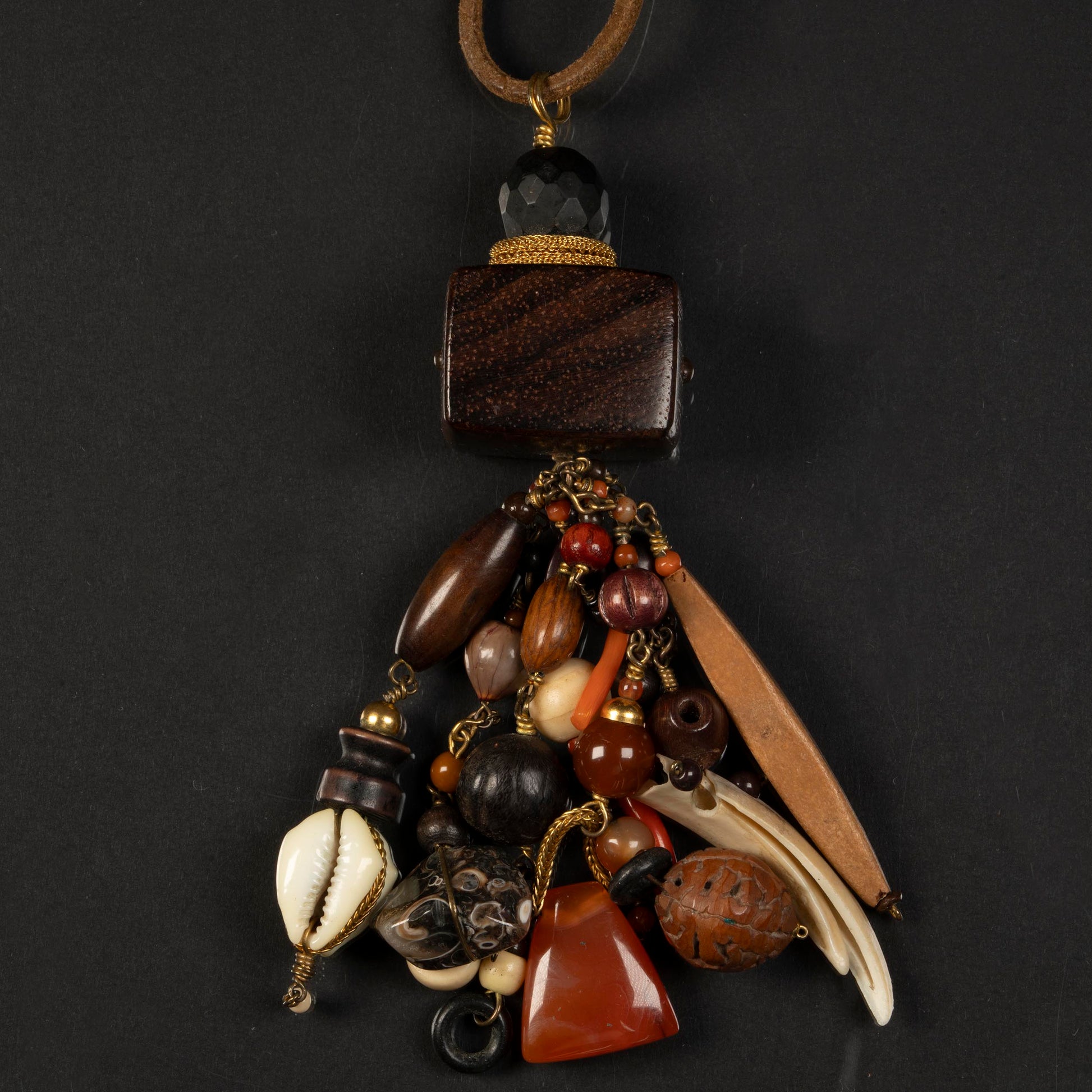 Jeanne Peral (1914-2005) była projektantką biżuterii dla haute couture w latach 1950-1970, wykorzystującą stare elementy, takie jak rozebrana biżuteria, twarde i kolorowe kamienie, koralowe kulki, jadeit, macica perłowa, antyczne złoto, drewno, cyrkonie, a także artefakty archeologiczne pochodzące z różnych cywilizacji. Jako niestrudzona podróżniczka zbierała materiały i artefakty z całego świata, aby tworzyć swoją charakterystyczną biżuterię. Każda z jej prac jest niepowtarzalna.