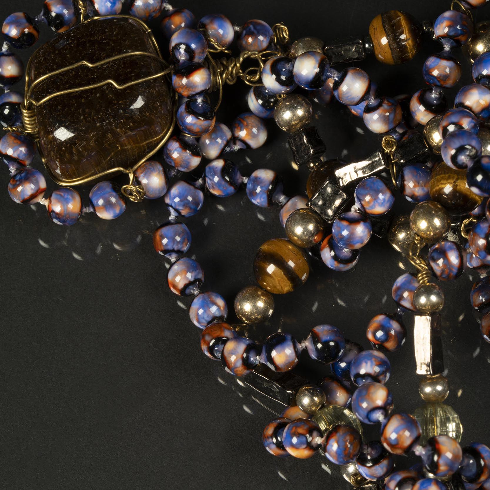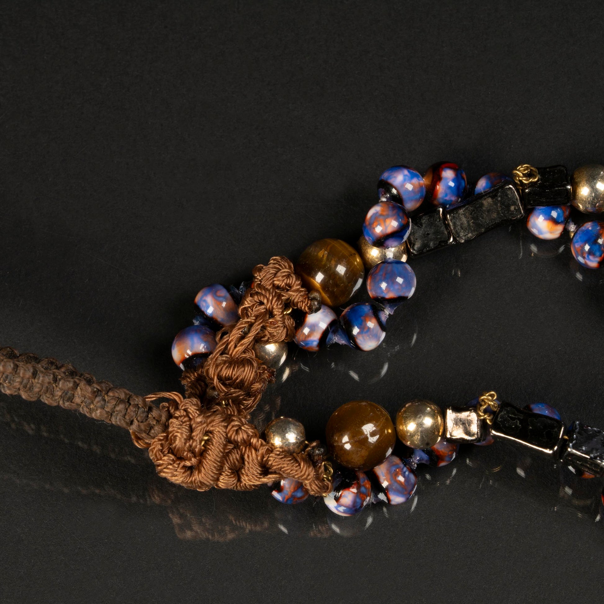 Naszyjnik z pozłacanego metalu, oko tygrysa, szklane koraliki i bawełniany sznurek